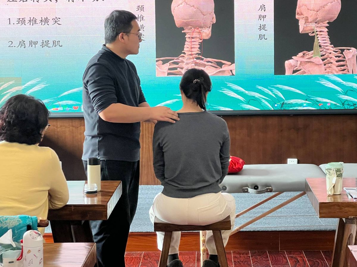 实操环节,学员们两两结对,相互实践。从穴位找不准的生疏,到逐渐找到酸胀感的精准,大家在老师的手把手指导下,慢慢掌握了“轻而不浮、重而不滞”的点穴精髓。“按完肩井穴,感觉肩膀瞬间松开了,之前的僵硬感减轻了大半!”一位学员兴奋地分享道。